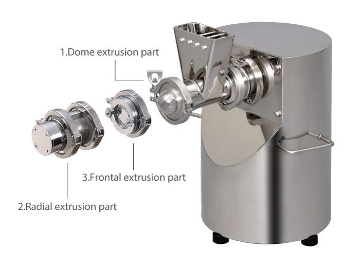 This machine features flexible applications—disintegration, particle-size regulation, and wet / dry granulation.